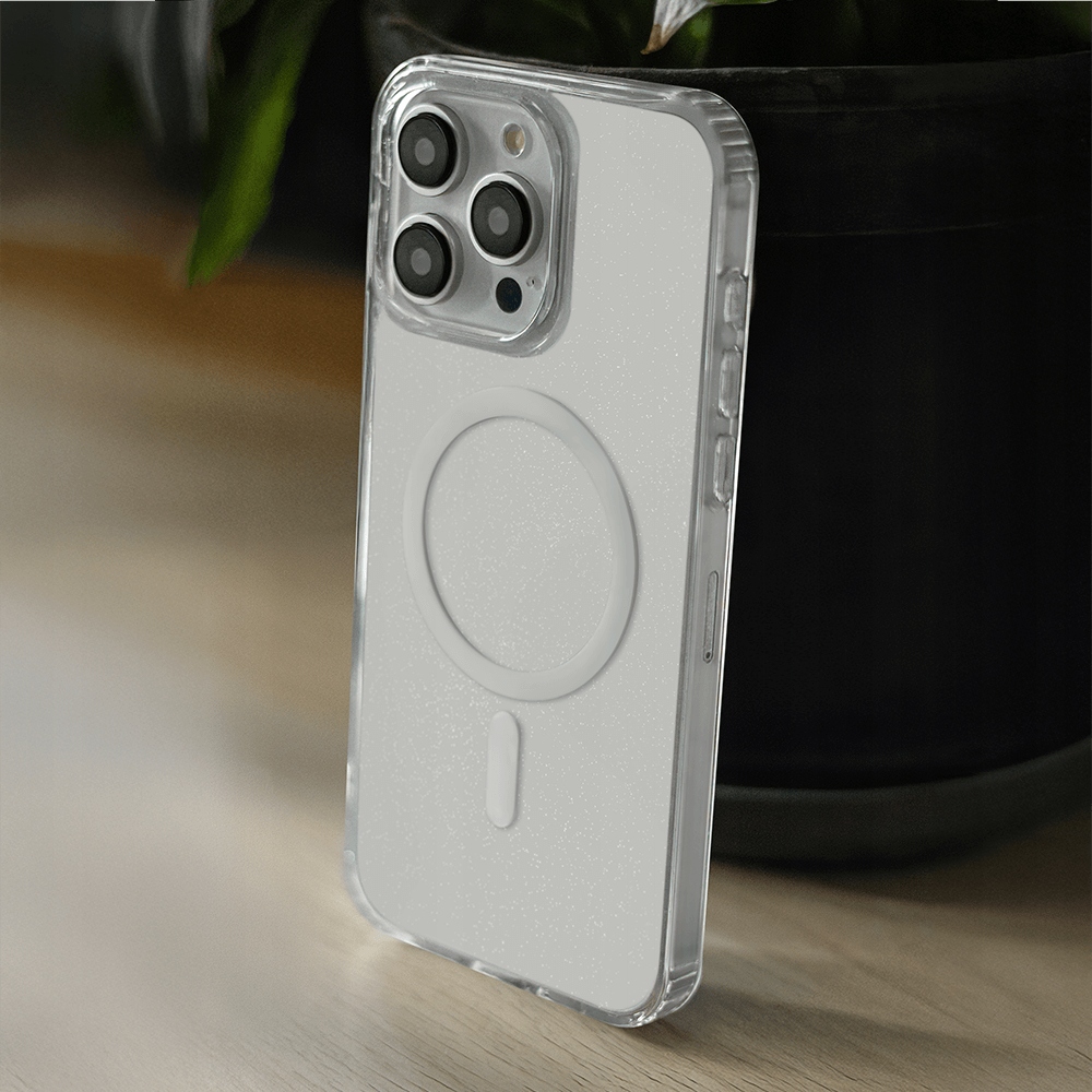 Nakładka Shine Mag wykonana jest z połączenia miękkiego tworzywa TPU po bokach oraz twardego materiału PC na pleckach, tworząc idealną ochronę dla smartfona. Ta przezroczysta nakładka z dodatkiem brokatu podkreśla oryginalny design urządzenia, dodając mu elegancji i blasku.